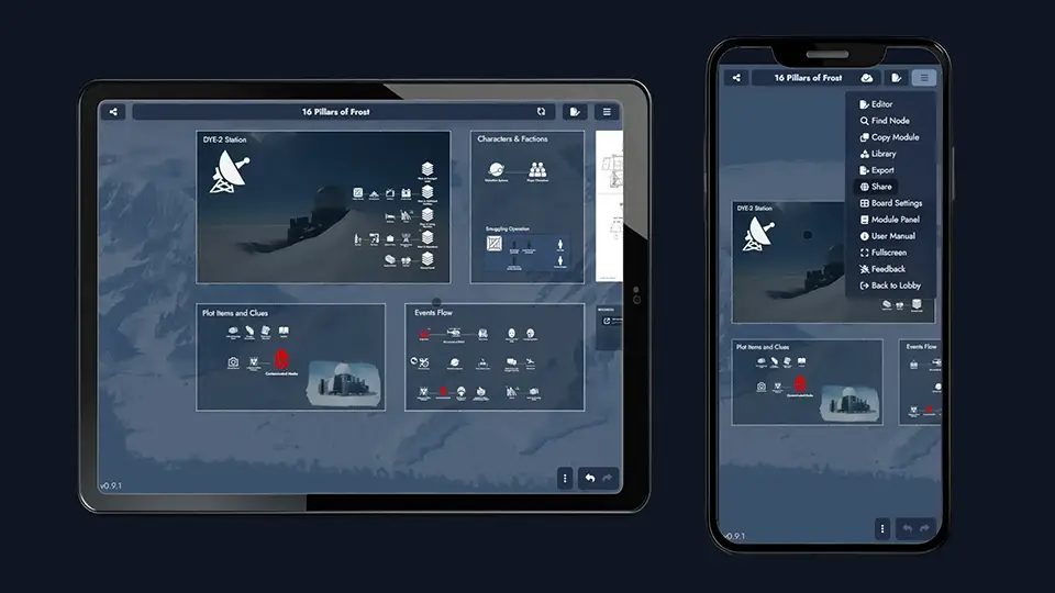 Mobile framework for Alkemion Studio, enabling all the same features as the desktop version on mobile devices. From UI responsiveness, to visual board interactions.